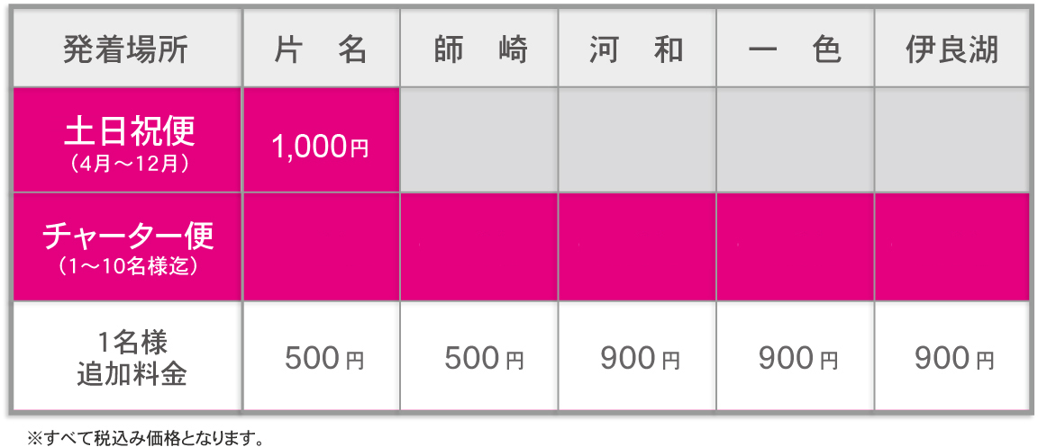 *定期便*4月~12月まで(1月~3月末まではお休み) *専属チャーター便(AM6:00~PM22:00)